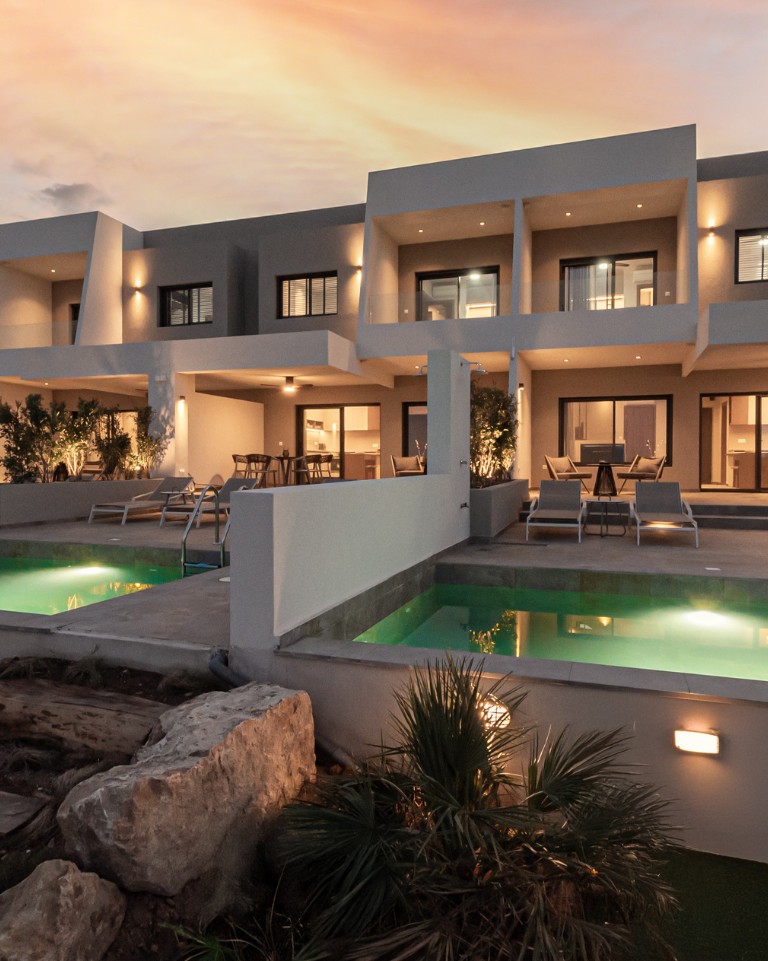 Inside, natural materials, warm tones, and clean lines frame a sense of ease. Step outside to still water and soft bird movement, a quiet rhythm that invites you to breathe and settle. With private pools and spacious interiors, calm becomes something you feel in both the place and yourself.