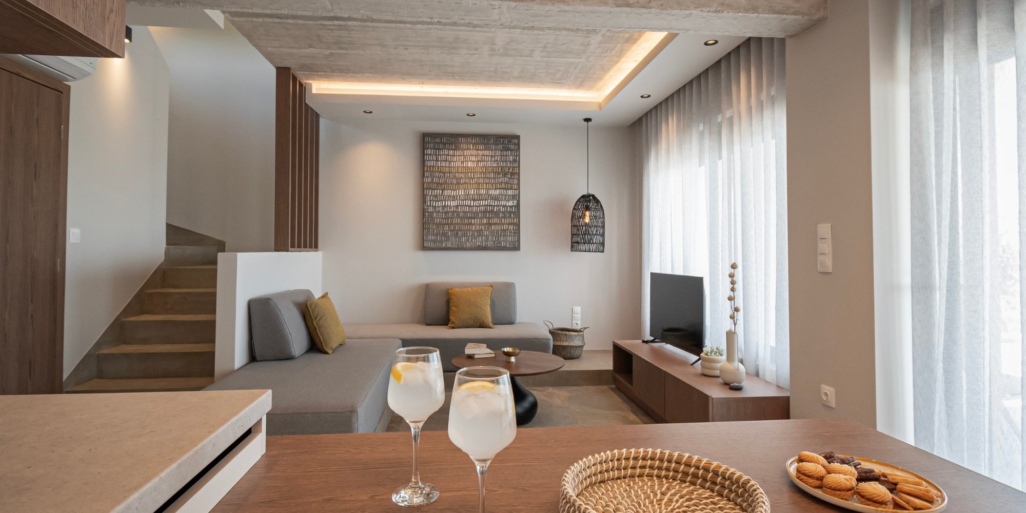 A quiet place where mornings open gently and nature feels unmistakably close. Soft light, calm air, and the protected wetland of Agios Mamas set a grounded, unhurried pace. With only four villas in this landscape, the experience feels intimate and personal.